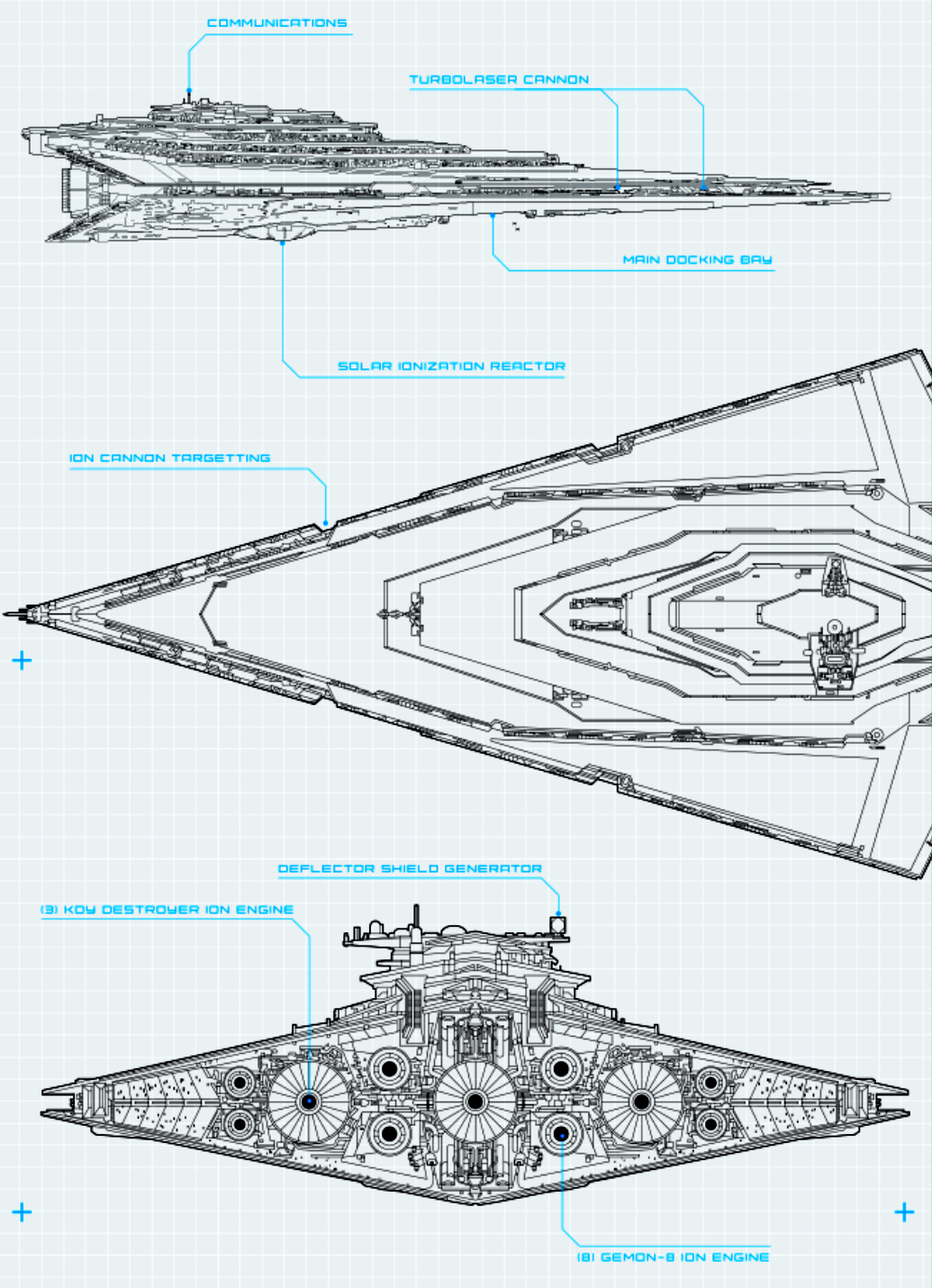 the Eclipse was around the same length as the Executor class (though more massive) and while IIRC the superlaser was weaker then the DS one, it didn't need a massive ball sticking out of the hull (in-fact had I've not been told I wouldn't be able to tell that the eclipse had a superlaser).Eternal_Freedom wrote:Jeez...also, it's a shitty design in that case, given how little volume there is immediately behidn the ISD "hangers." Surely putting them further back would be a lot more sensible?Abacus wrote:That big-o-fuck-you ship is in fact launching ISDs. I did some calculating (thank you MSPaint) and figured that it is literally 50 ISDs long -- making it, at minimum, 80,000m long.